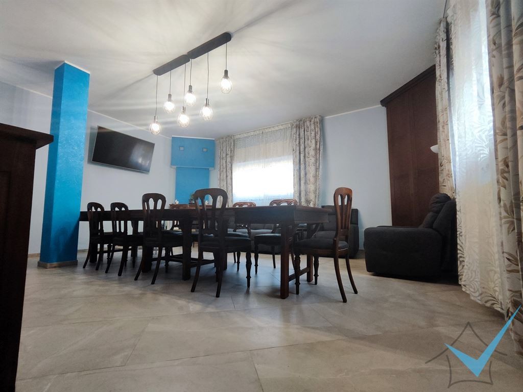 Tramite scala interna, caratterizzata da un elegante parete in pietra, che richiama i dettagli della facciata esterna, troviamo appartamento principale di mq 190 composto da un ampio salone con camino oltre vetrate e balconi con vista sul centro di Limbiate, cucina abitabile con balcone, quattro camere e doppi servizi.